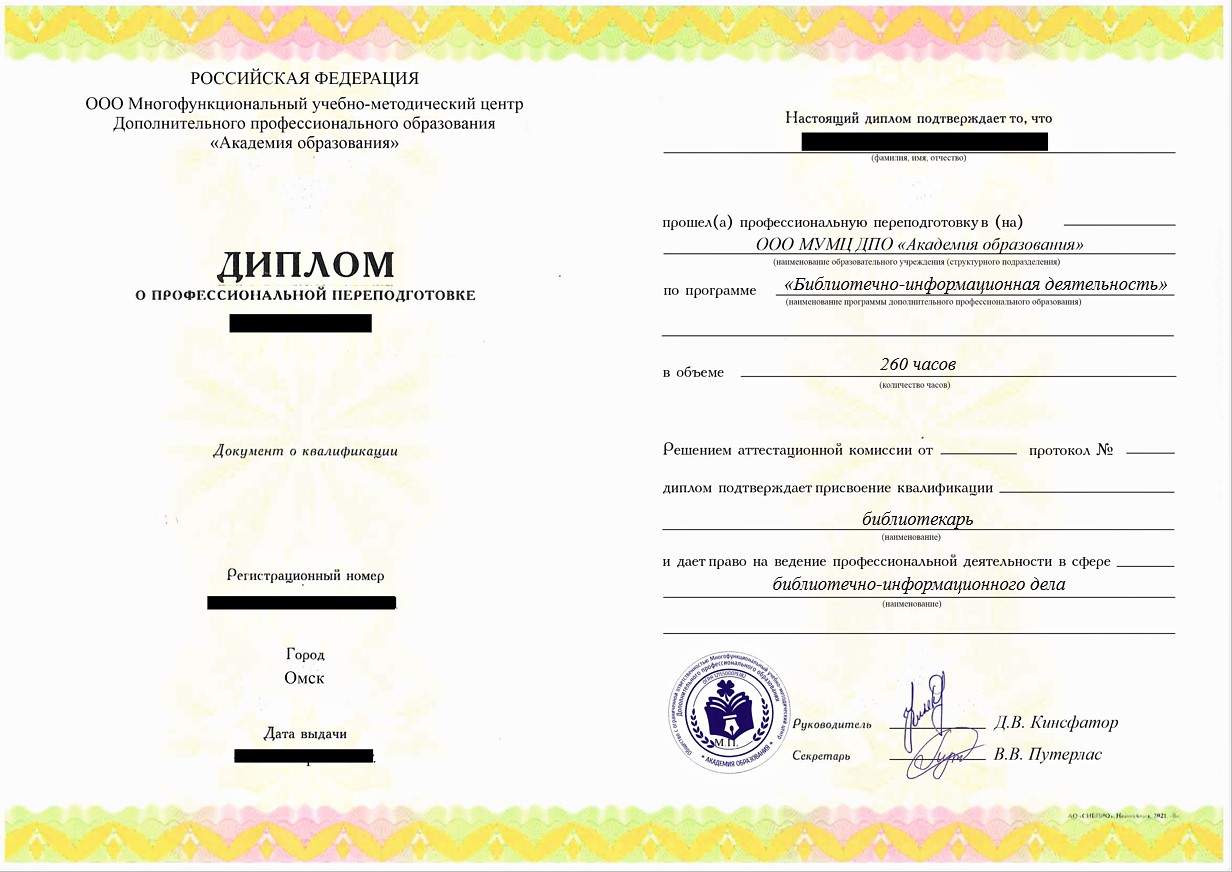 - Диплом о профессиональной переподготовке установленного государством образца. Срок действия: бессрочно