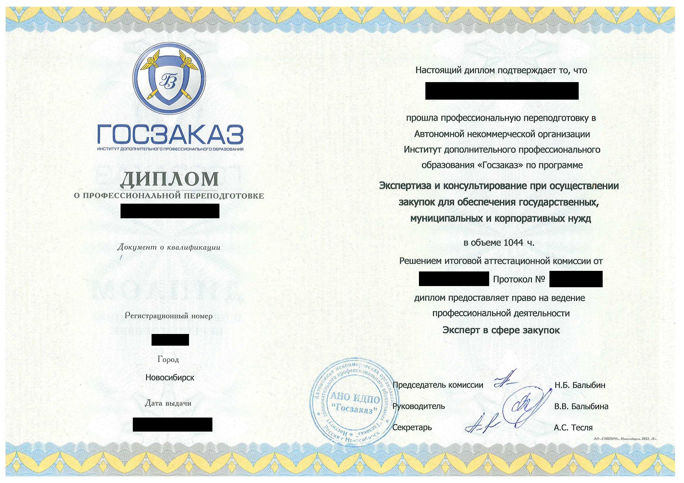 | Курс обучения | Профессиональная переподготовка |